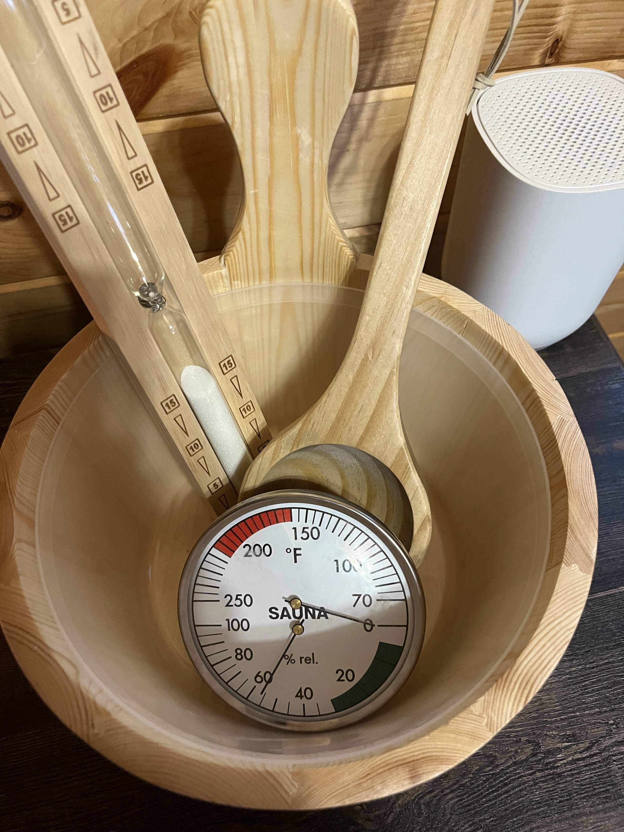 Optional: sandals (for walking between sauna, plunge, shower), robe, warm change of clothes